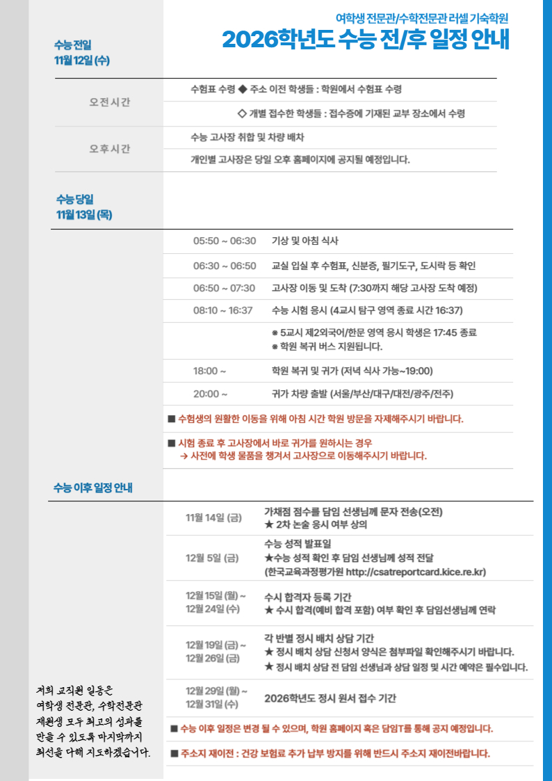 2026 ¼ö´É ÀüÈÄ ÀÏÁ¤ ¾È³»