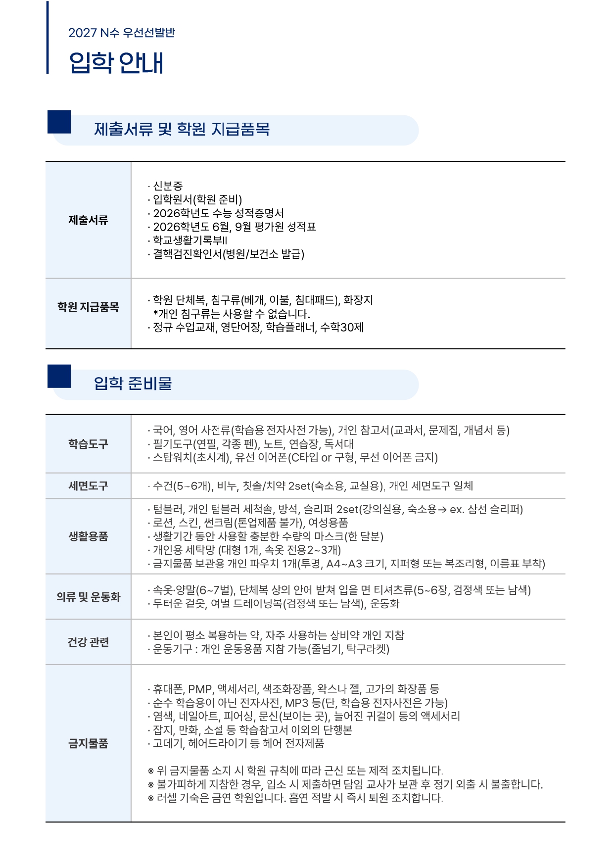 2027 ¿ì¼±¼±¹ß¹Ý ÀÔÇÐ Áغñ¹° ¾È³»
